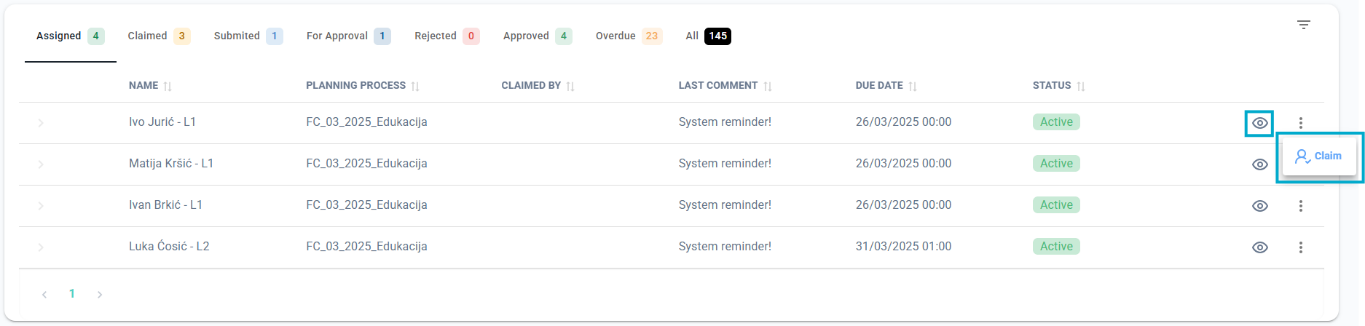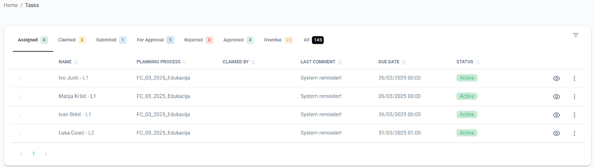- Assigned – list of tasks assigned to you but still you didn’t Claimed task