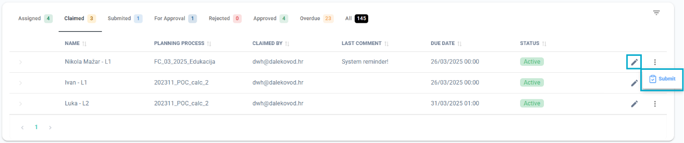- Submitted – list of tasks you have submitted, that are not yet approved/rejected