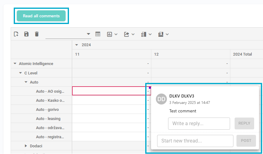 - Add a comment to any cell by selecting "Add Comment", which opens a comment window.
