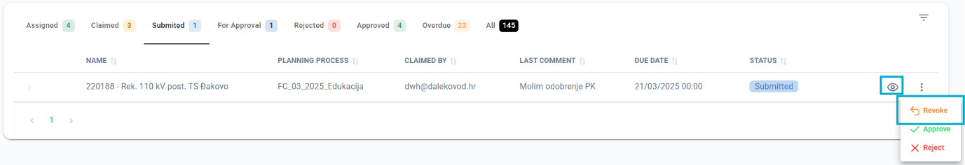 After submitting a task, but before the reviewer approves or rejects it, you have the option to revoke it. Revoking the task will return it to its previous state, allowing you to make further edits before resubmitting.